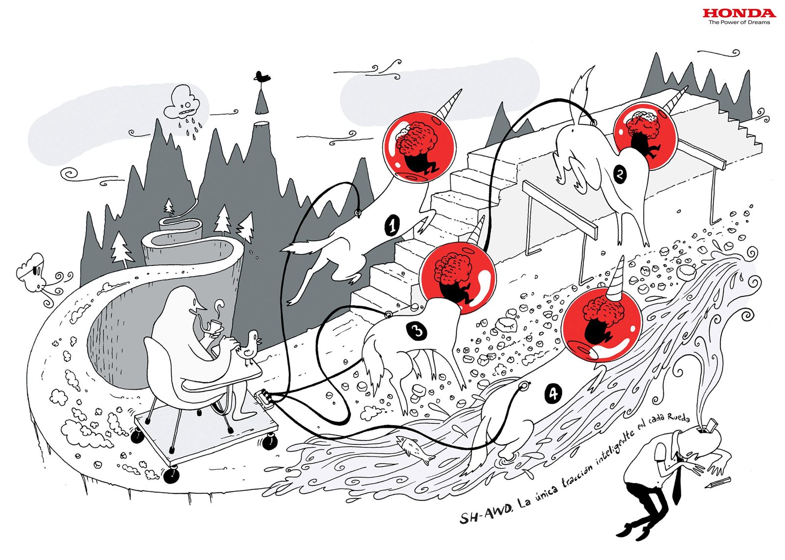 Corporate image campaign for Honda following its tagline ‘The power of dreams”. Each piece is focused in one benefit that Honda developed through its research in technology. Here they are some of them.